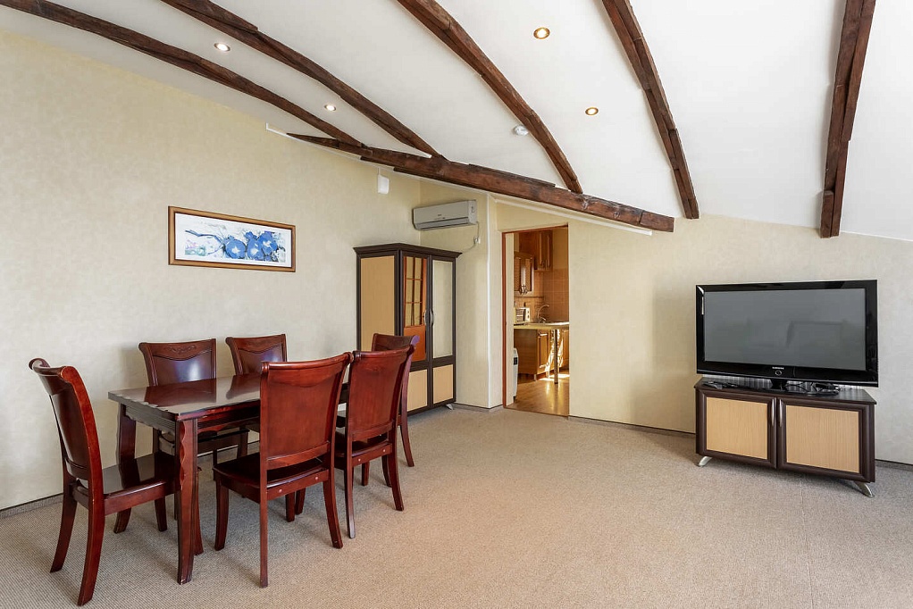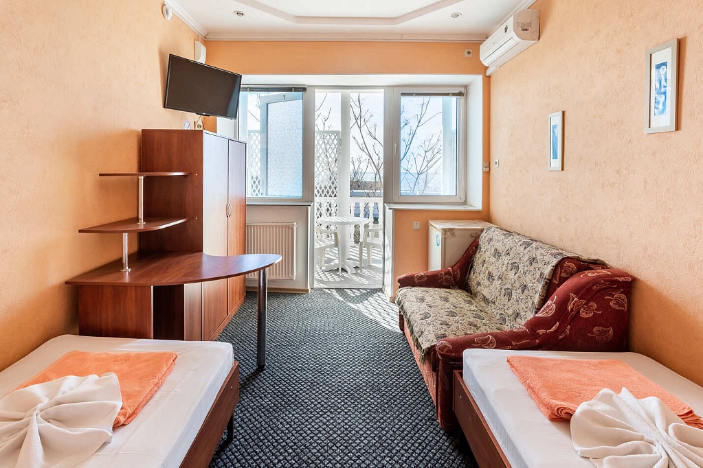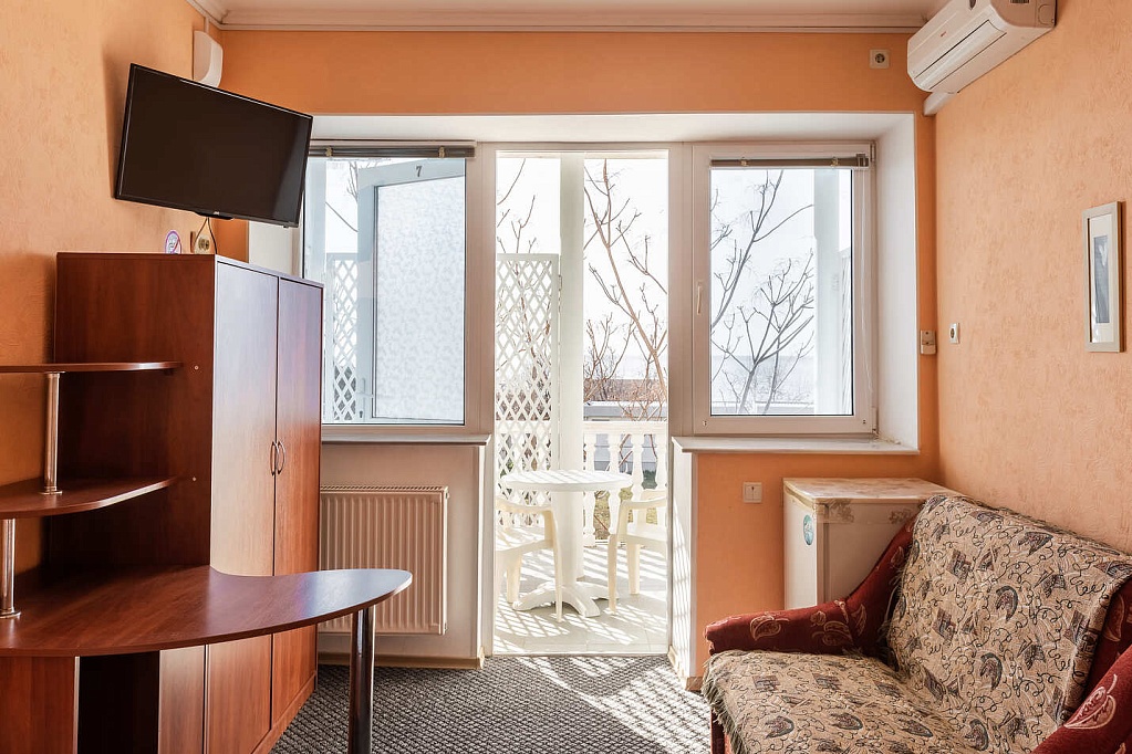 - Оборудование: кондиционер, мини-холодильник, телевизор ЖК, чайный набор посуды